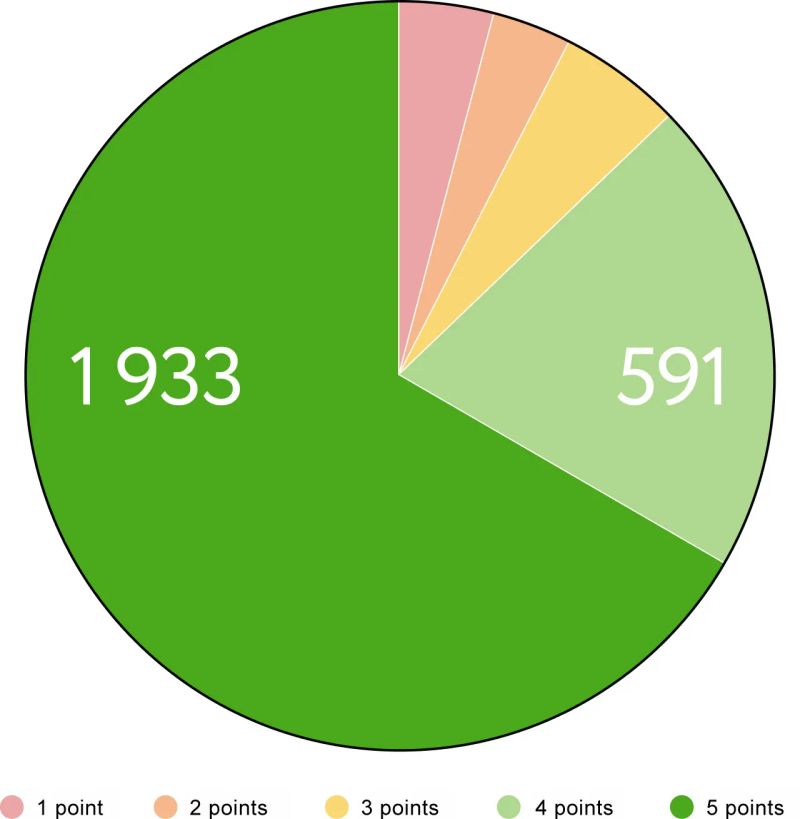 After completing an order, the customer receives an automatic email with a request to rate the quality of service on a 1 to 5 point scale.