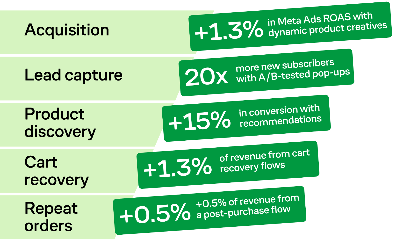 Switched to Maestra and improved each step of the customer journey:• Acquisition• Lead capture• Product discovery• Cart recovery• Repeat orders