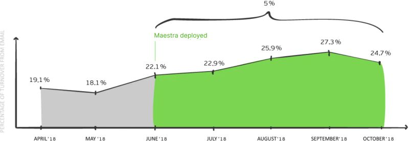 We were anxious to see results. In the whole first month of collaboration, Finn Flare’s marketing and their Maestra manager kept a close eye on things, checking almost daily on how emails were doing and what results they were getting. We wanted to be sure that these emails were correctly matched to customer activity and that they weren’t being sent out too often.