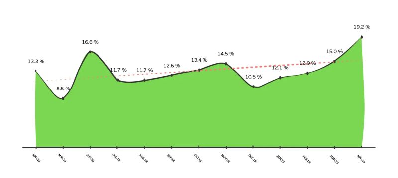 On average, the monthly share of revenue from newsletters relative to the total revenue of the online store increased from 12% to 15% (data from Google Analytics, based on the last click attribution method). As you can see in the graph below, during the wintertime, sales decline and then begin to increase by summer.