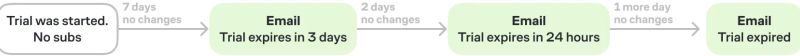 For subscription-based mobile apps, it is very important to motivate newcomers to evaluate the full functionality of the app. Therefore, all communications with the new users are strategically designed to encourage them to start a trial or purchase a subscription.