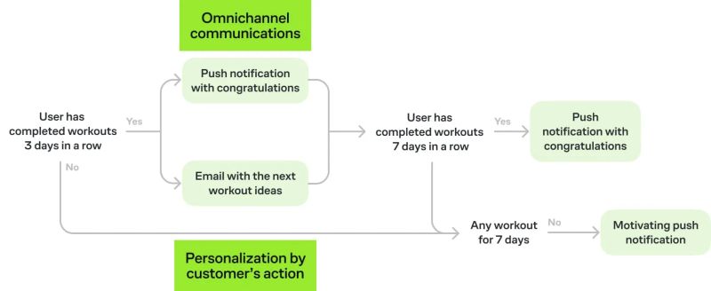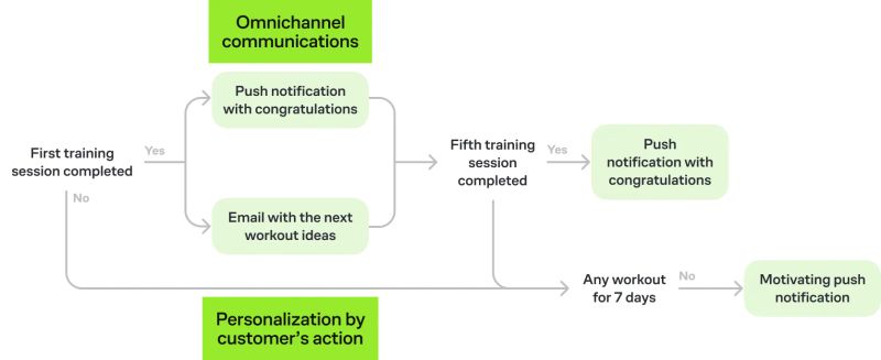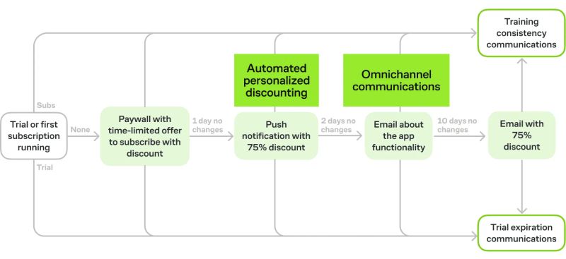 Once a user has subscribed, it’s important that they use the app consistently. However, it can be challenging for amateur basketball players to maintain regular workouts. That’s why the team launched a special flow to encourage training consistency and increase app retention and users’ lifetime value.