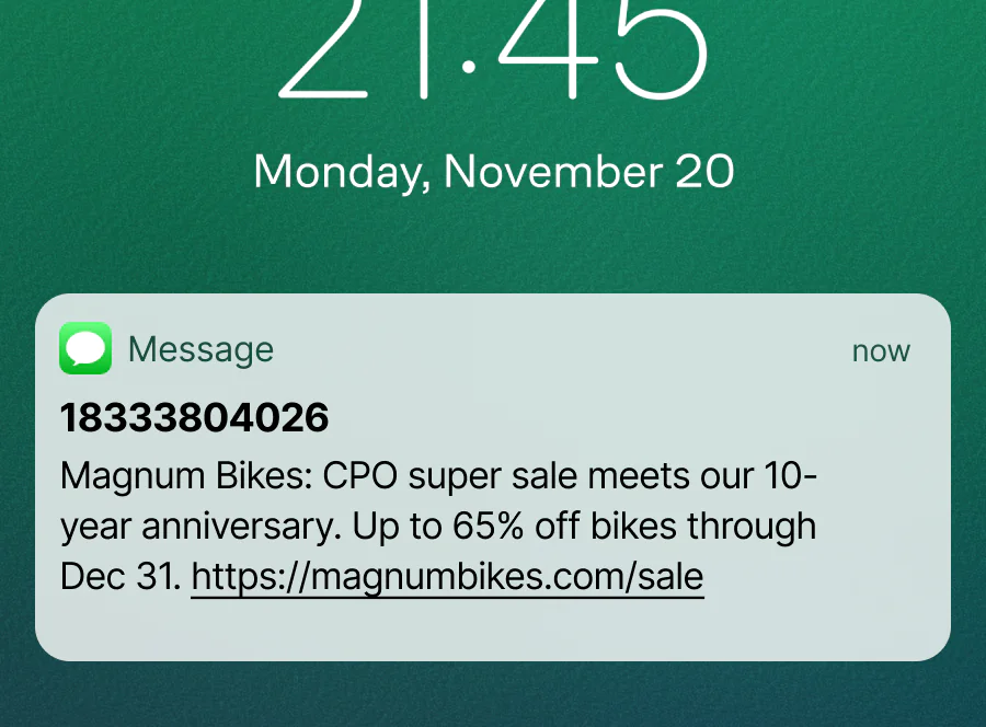 In 2025, Magnum ran four major promotions: Memorial Day, Labor Day, Black November, and their 10-Year Anniversary Sale. For each campaign, Maestra coordinated email, SMS, and on-site activation to make the sale visible at every touchpoint.