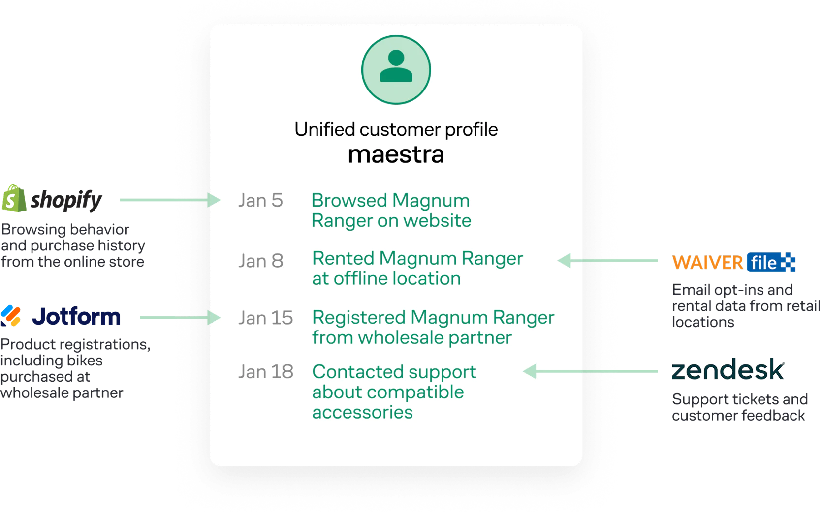 Our customers don’t buy in a straight line — they research online, visit a retail store, register a product later. Maestra unifies that entire journey into one profile.