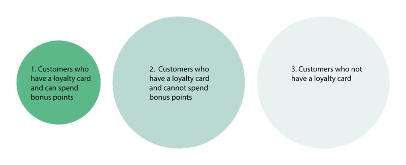 The first segment represents customers who are registered in the loyalty program and have provided all the data, including their email and phone number (which was a mandatory condition for debiting bonus points at the time).