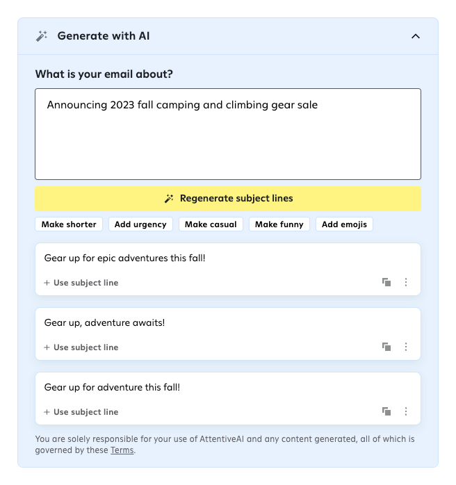 Attentive has started to infuse more AI-driven features and analytics into its platform. Its Attentive AI aims to help marketers work smarter by suggesting optimal send times or even generating high-performing message copy for campaigns. In theory, that means quicker campaign creation—let AI draft a text and subject line, tweak as needed, and you’re good to go.