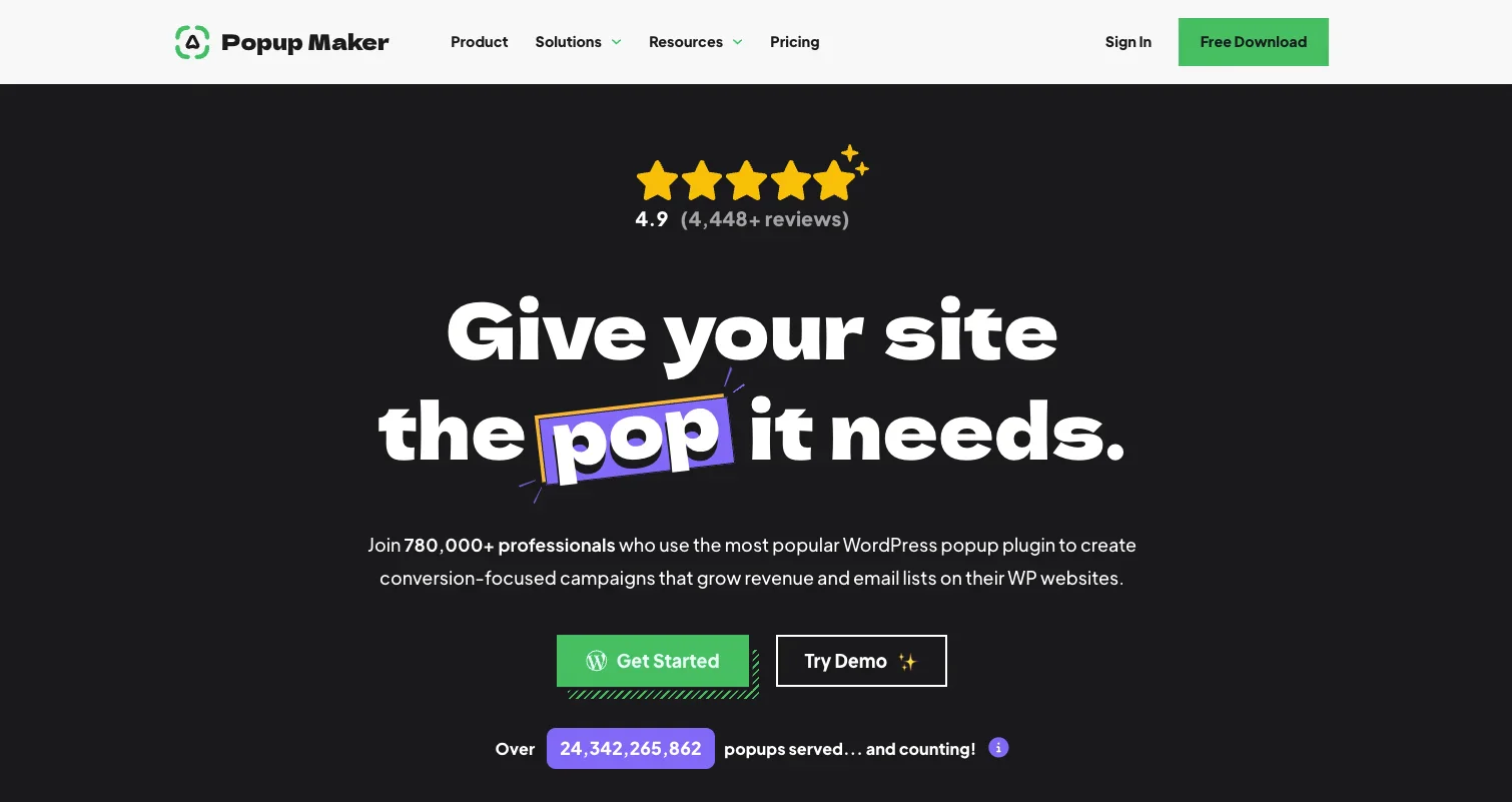Popup Maker stands as a trusted WordPress popup plugin that serves over 780,000 active users. This platform helps businesses generate more leads and boost their revenue through campaigns focused on conversion.