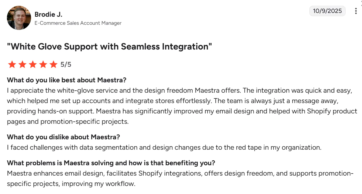 • Support quality matters for success: Platforms offering dedicated Customer Success Managers and strategic guidance like Maestra provide significantly more value than basic email-only support options.