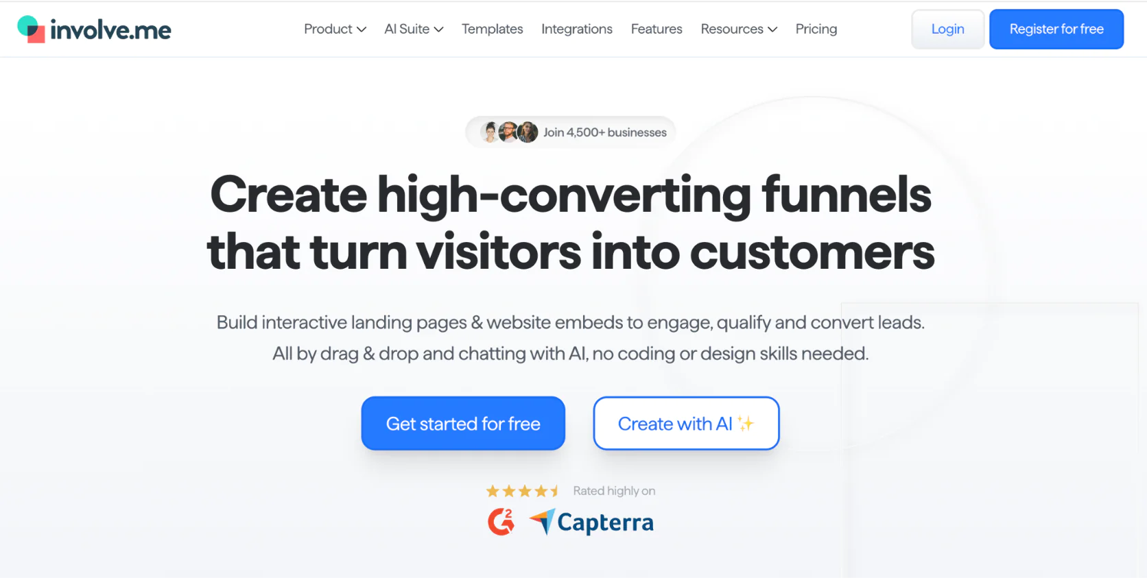 Quiz-based recommendations, +350 templates, AI quiz builder