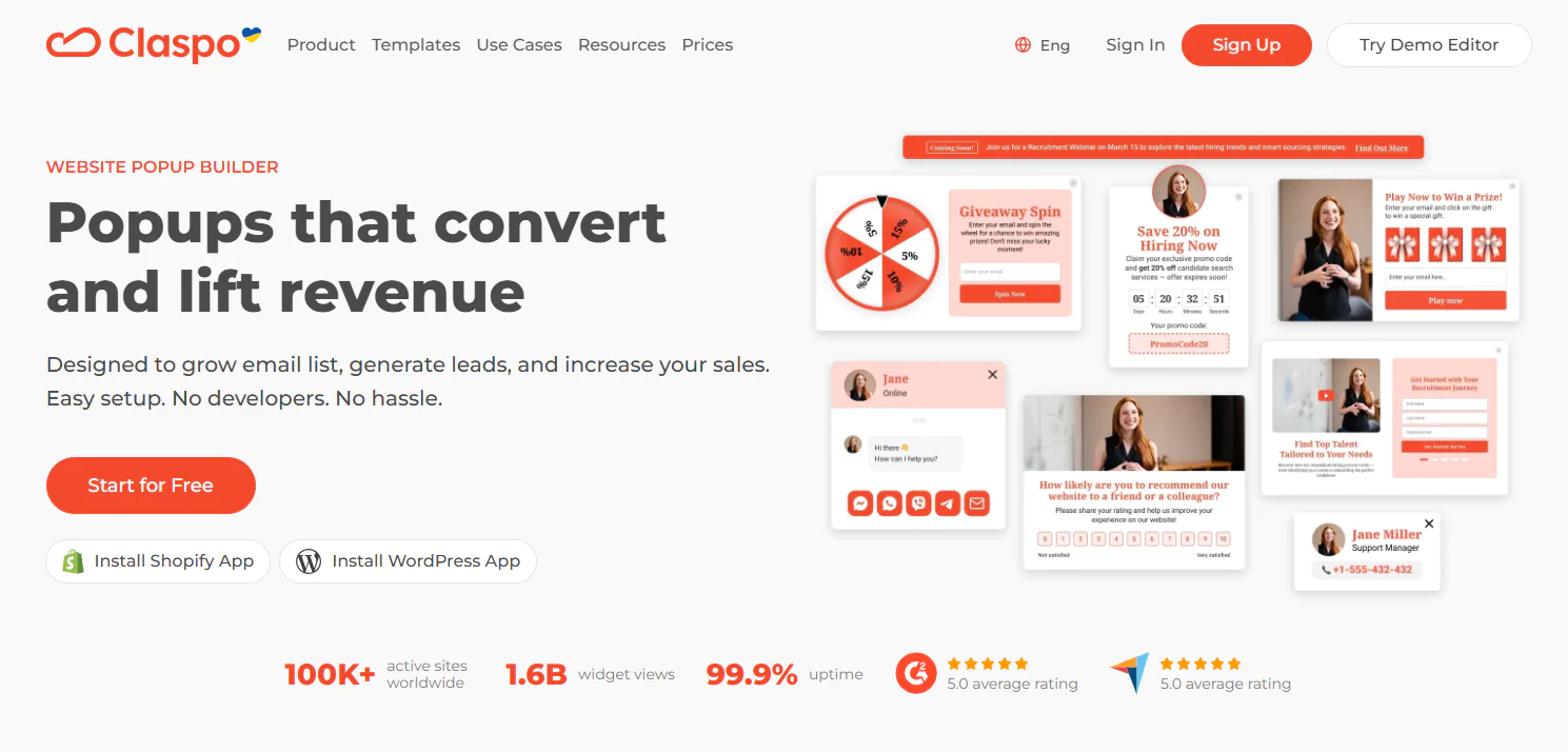 Lead capture, exit intent, and gamified popups, built-in A/B testing