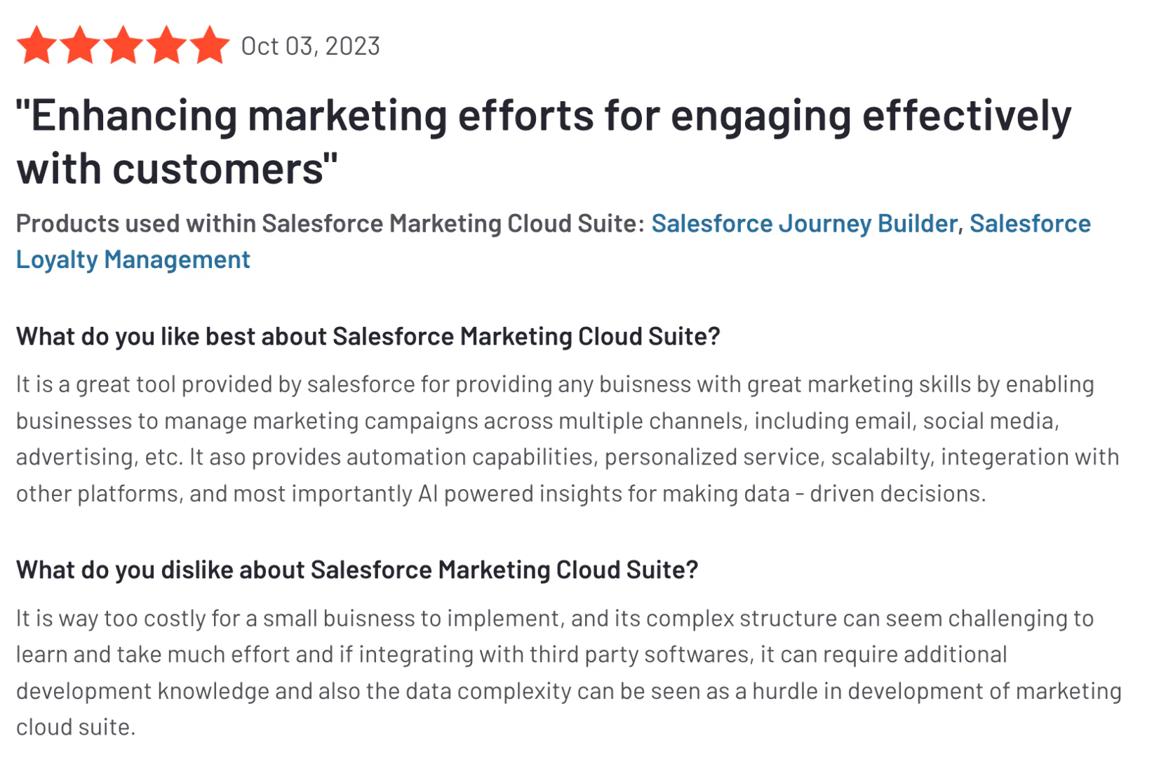 In short, SFMC is usually one of the most expensive options, suitable when a business is ready to invest heavily in marketing tech.