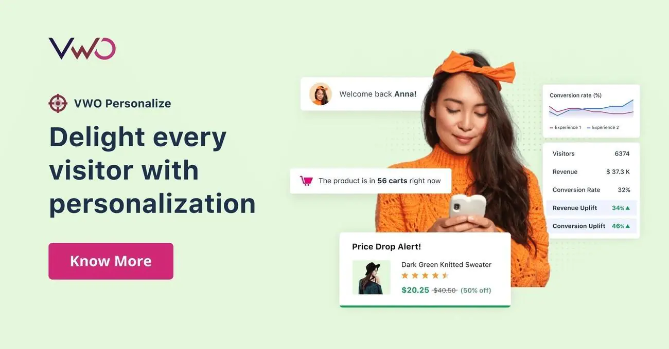 VWO Personalize helps online stores create tailored shopping experiences through A/B testing and behavioral targeting. Many teams use this platform to test website personalization before they commit to enterprise solutions.