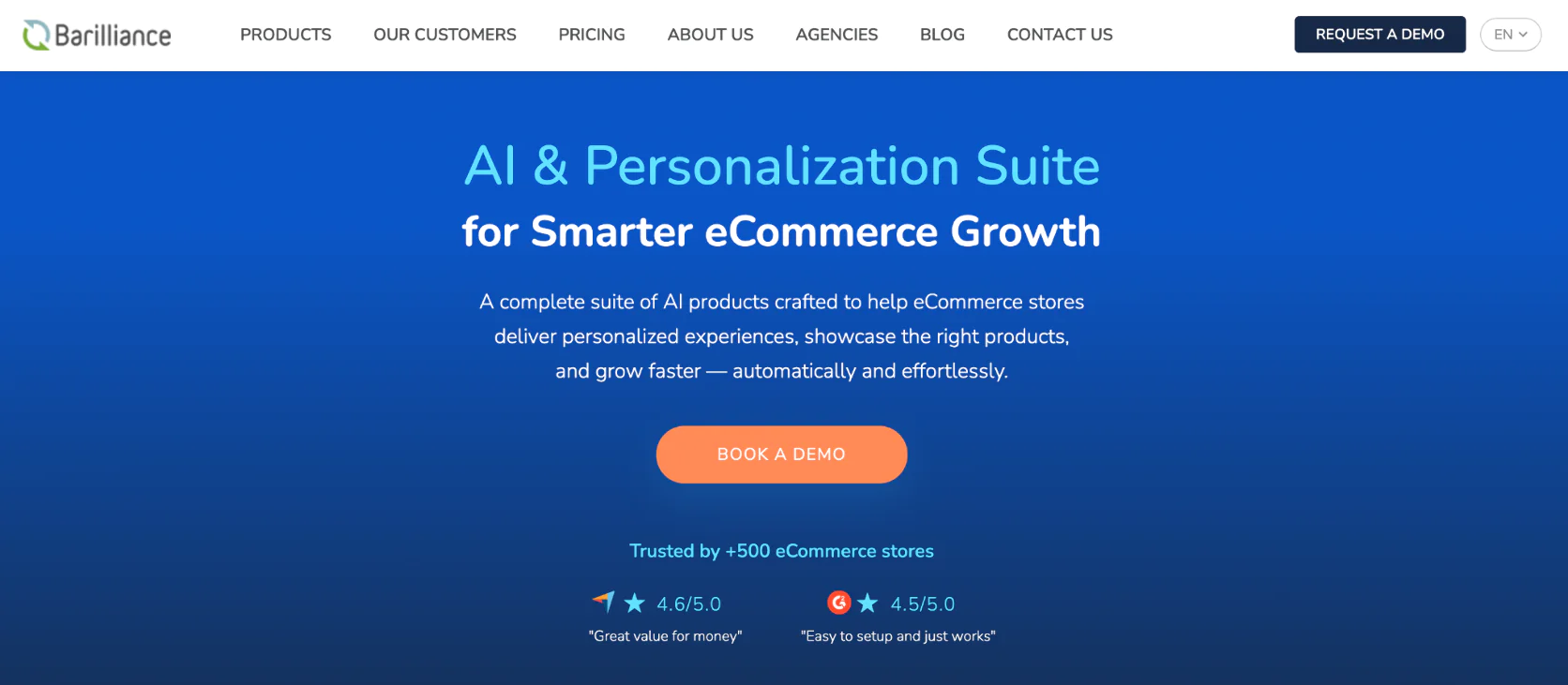 Barilliance has provided ecommerce personalization tools since 2009. The platform helps online stores create individual-specific experiences that boost conversions and customer participation.