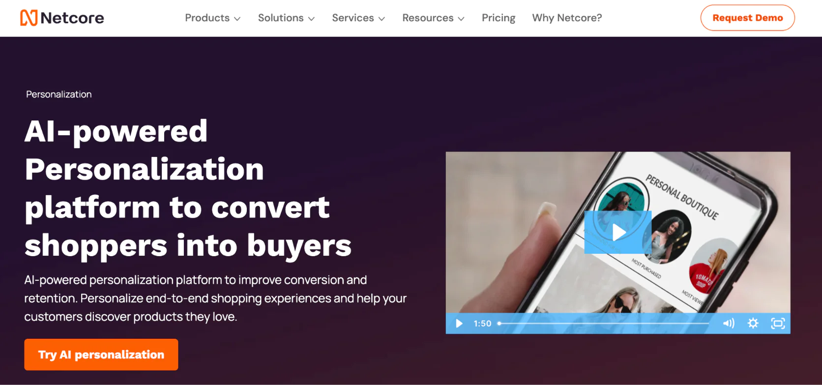 Netcore Cloud's AI-powered engine creates tailored shopping experiences based on customer behavior and priorities. The platform gives a complete 360° view of users. This helps create accurate product recommendations that stay contextual and personal.