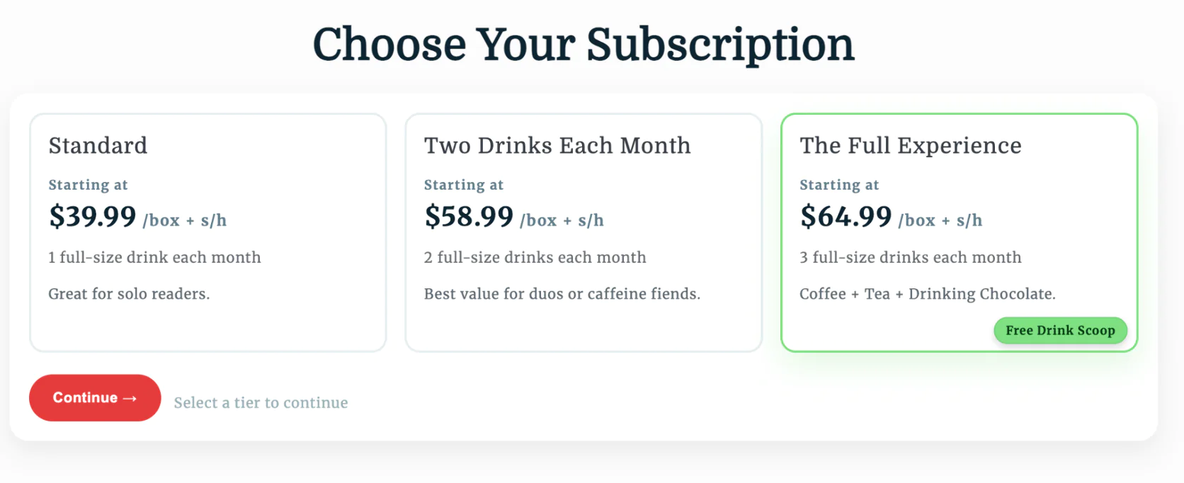 Legendary Box added an exclusive gift (a purposeful spoon) to their most expensive subscription plan to incentivize upgrades. Simple product bundling with a perceived-value bonus drives customers to higher tiers.
