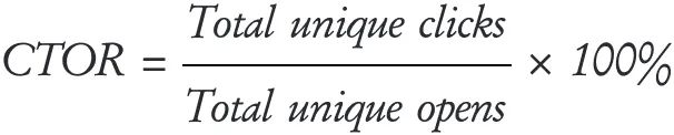 The Click-to-Open Rate (CTOR) measures how many people clicked on a link in your email after opening it — it’s like checking how many people found the inside of your email interesting enough to take action. You get this rate by dividing the number of clicks by the number of opens and then turning it into a percentage.
