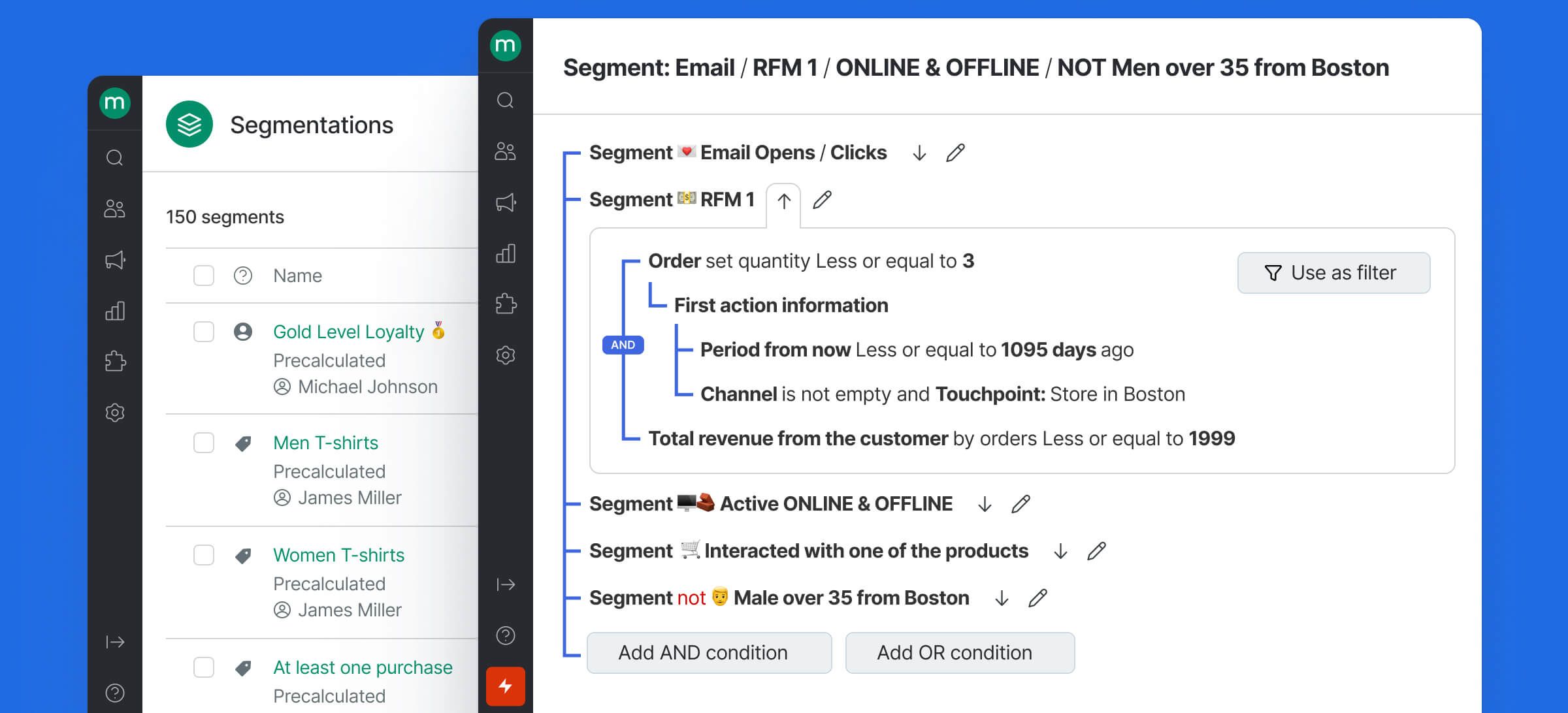 Segment by customer, product, brand, order status, or purchase history. Unlock historical tracking, calculated fields, nested logic, and simple management of product libraries and feeds