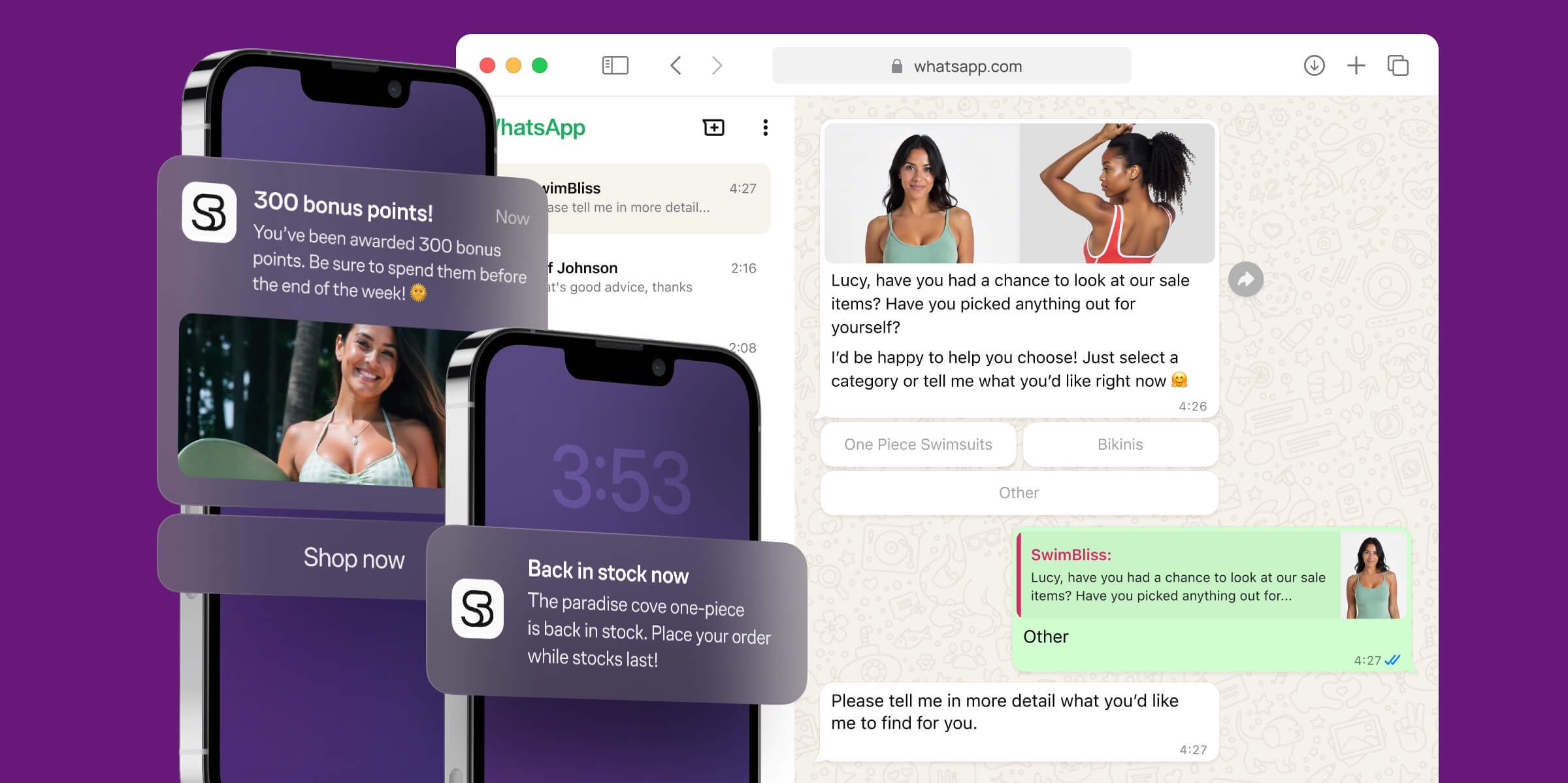 Drive engagement with personalized product suggestions, offers, reminders, and AI-generated content tailored to each customer